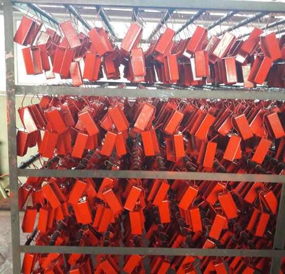 弹簧减震器外壳采用冲压加工成型,弹簧是全自动精密弹簧机制造,平稳性相当好。其外壳与弹簧均经过静电涂装处理,并经盐雾试验严格品管,保证在长期工作状态下不会腐蚀,工作效率不下降。