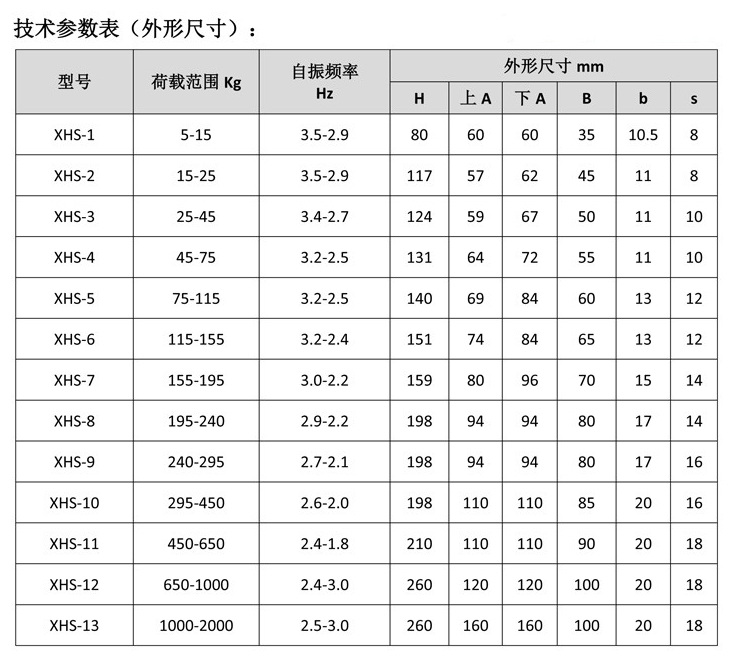 XHS型吊式弹簧减震器产品参数详解图