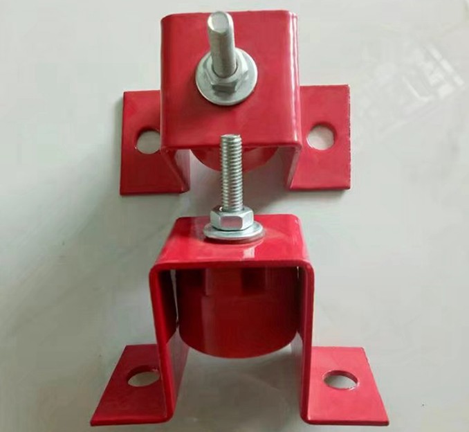 U型吊顶(墙体)减震器是利用橡胶、钢弹簧的反压原理,采用优质钢弹簧和丁腈合成橡胶阻尼村料组成的隔振降噪元件,设计成悬挂式缓冲减振吊架。它具有钢弹簧的高弹性、固有频率低和丁腈合成橡胶的阻尼比大的双重特点,能消除钢弹簧所特有的共振时振幅激增的现象,在较宽的干扰频率范围内有相当明显的隔振效果,特别适合悬挂隔离因设备振动造成的低频固体传声。广泛应用于各种空调设备管道、水泵管道、风机、风管、气管等设备的隔离振动。减振吊架结构简单,受力均匀明确,自振频率低,隔振效果好,是悬挂振动设备、管道的理想减振降噪器件。